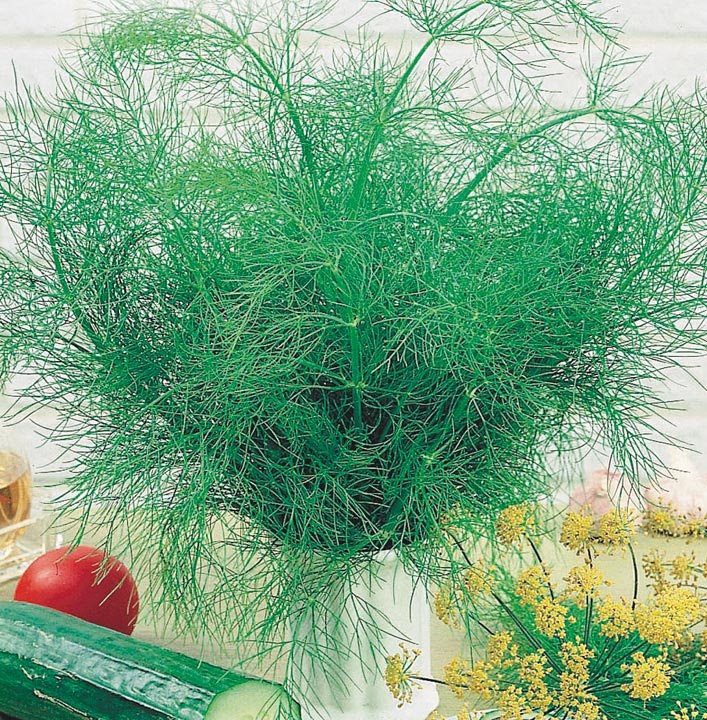 Растения компактные, густо облиственные, высотой 30-50см. В фазу цветения высота растений 100-150см. Листья сизо-зеленые, сильно рассеченные, сочные, нежные, ароматные.